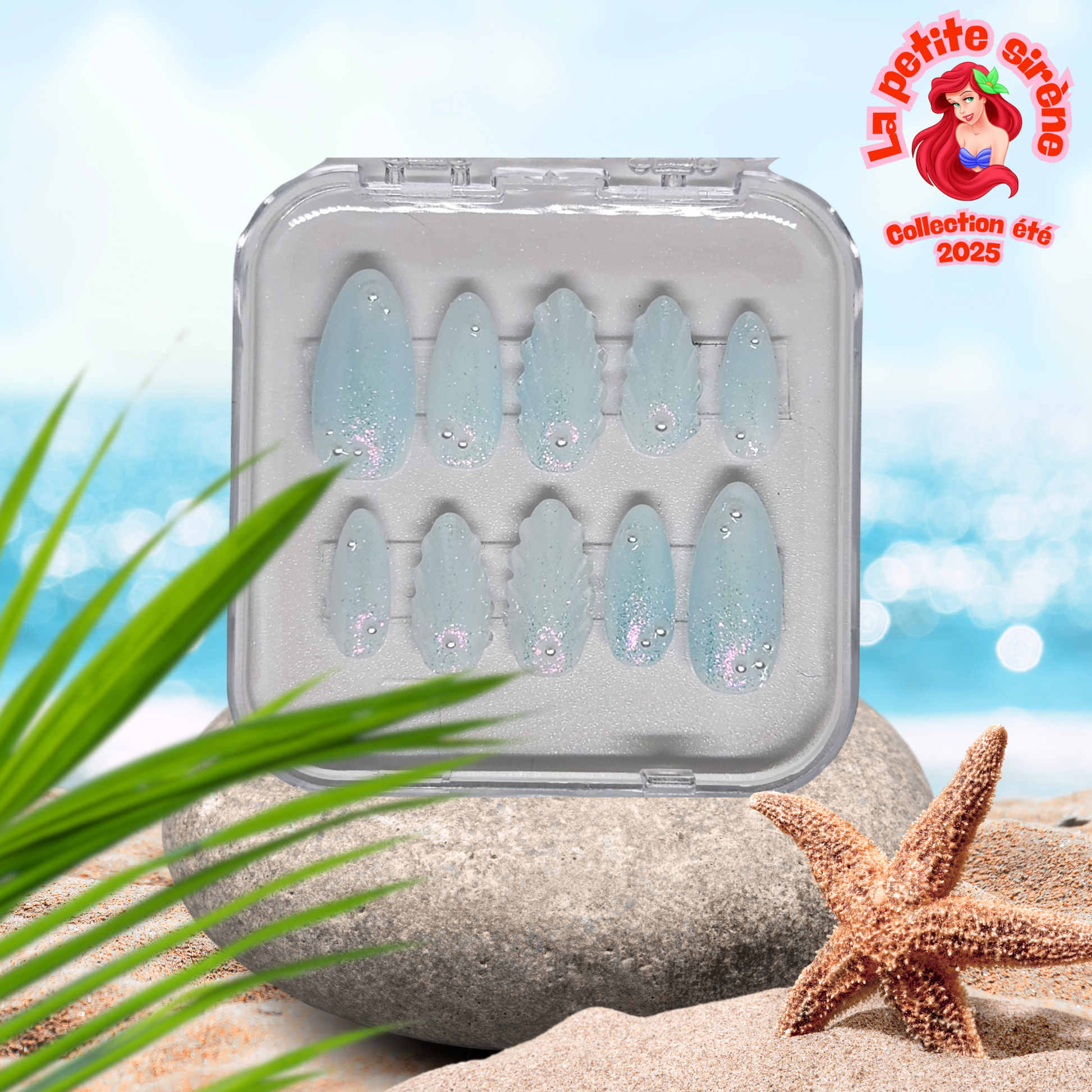Plongez dans un univers féerique avec ces ongles press-on faits main, inspirés par Ariel de La Petite Sirène. Chaque ongle scintille comme un coquillage précieux, capturant la magie des profondeurs marines. Osez afficher un style audacieux et enchanteur qui fera tourner toutes les têtes. Transformez vos mains en un véritable trésor sous-marin grâce à cette création unique et éclatante.