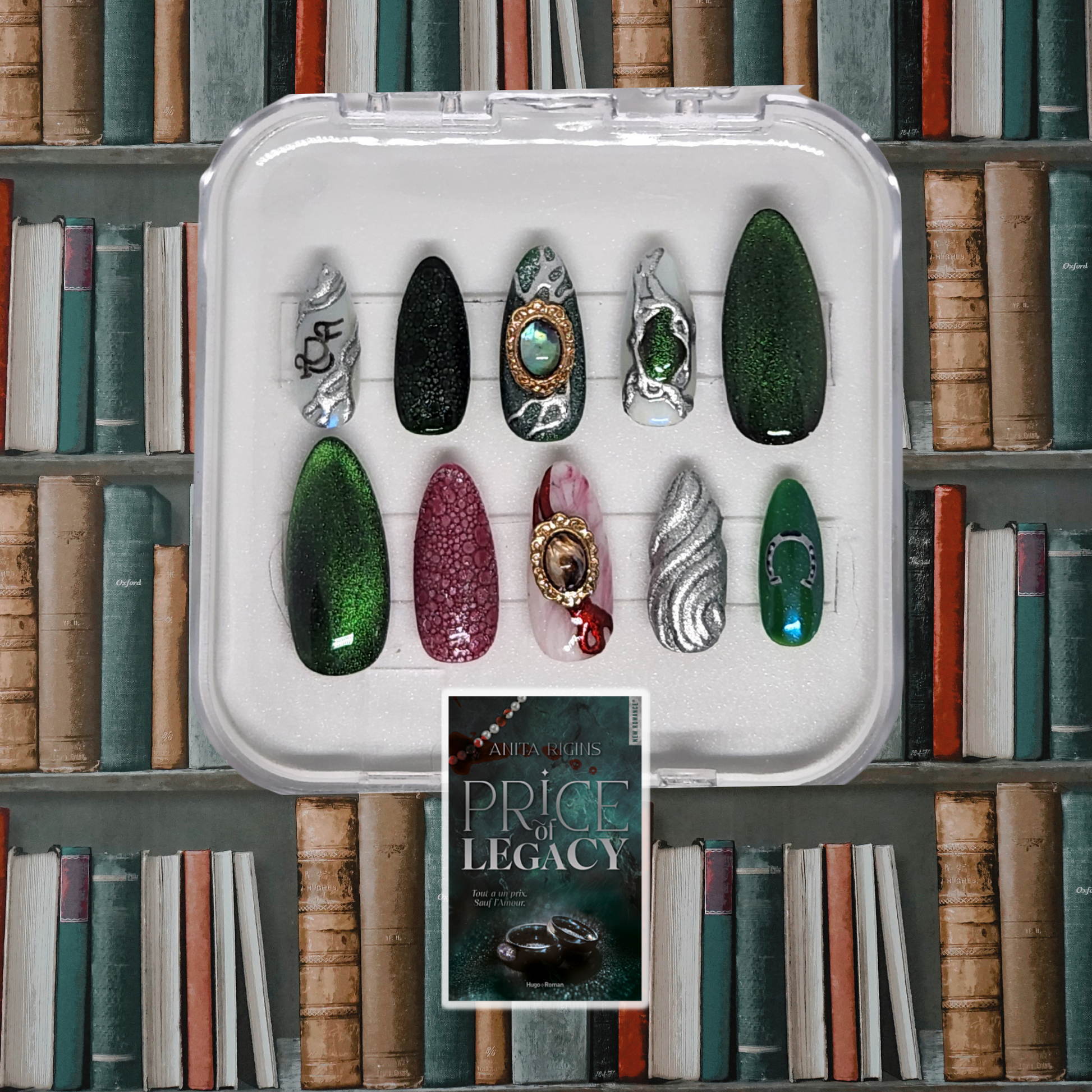 Découvrez ces magnifiques ongles press-on faits main, inspirés par l’univers captivant du livre Price of Legacy. Chaque pièce audacieuse allie élégance et caractère, parfaite pour affirmer votre style avec une touche littéraire unique. Osez porter un accessoire qui raconte une histoire et sublime vos mains en un clin d’œil.